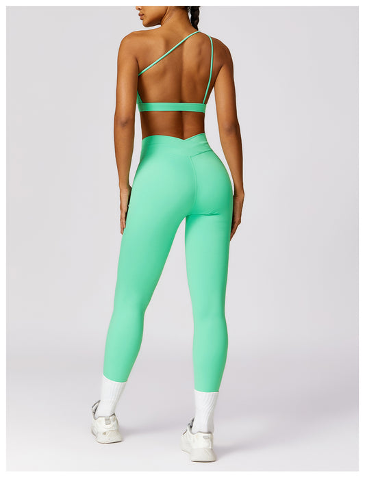 SET DEPORTIVO VERDE LEGGINGS Y TOP TIRAS